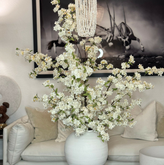 mate beige st. tropez jarrón con blanco cerezo flor árbol