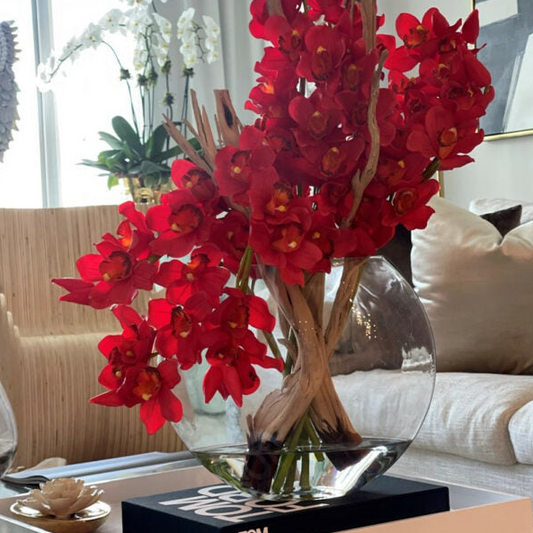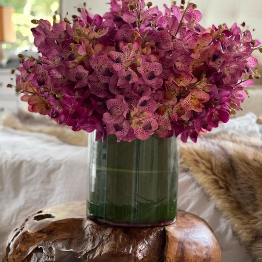 moderna casa vidrio jarrón con rosa vandas y verde cymbidiums