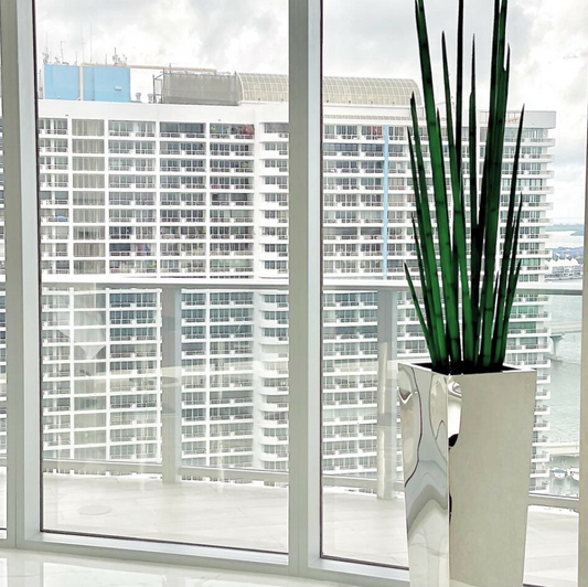 mediano cuadrado jarrón en inoxidable acero con ave de paraíso (2.13 m).