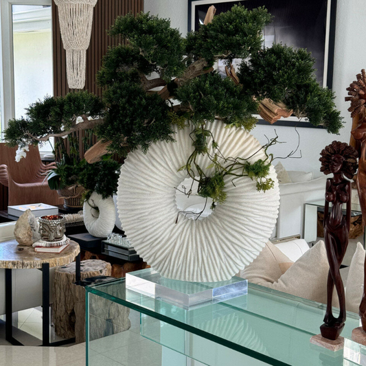Creeping Artificial Cedar bonsái en vidrio jardinera