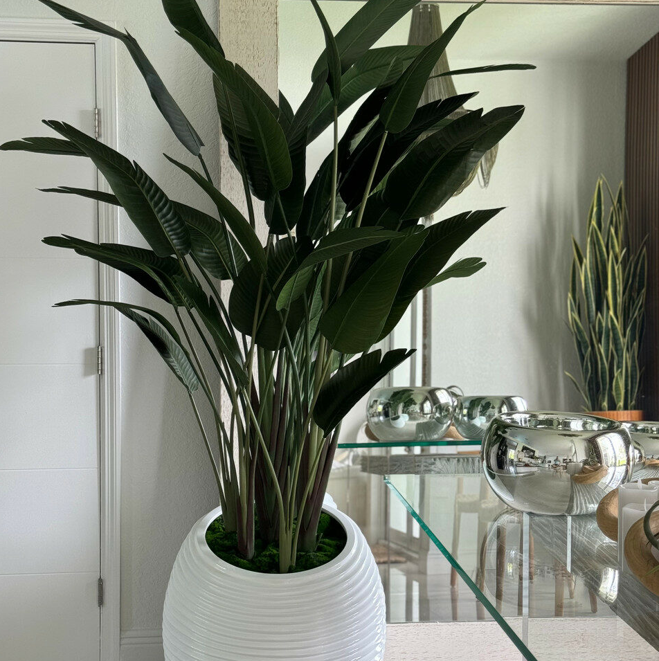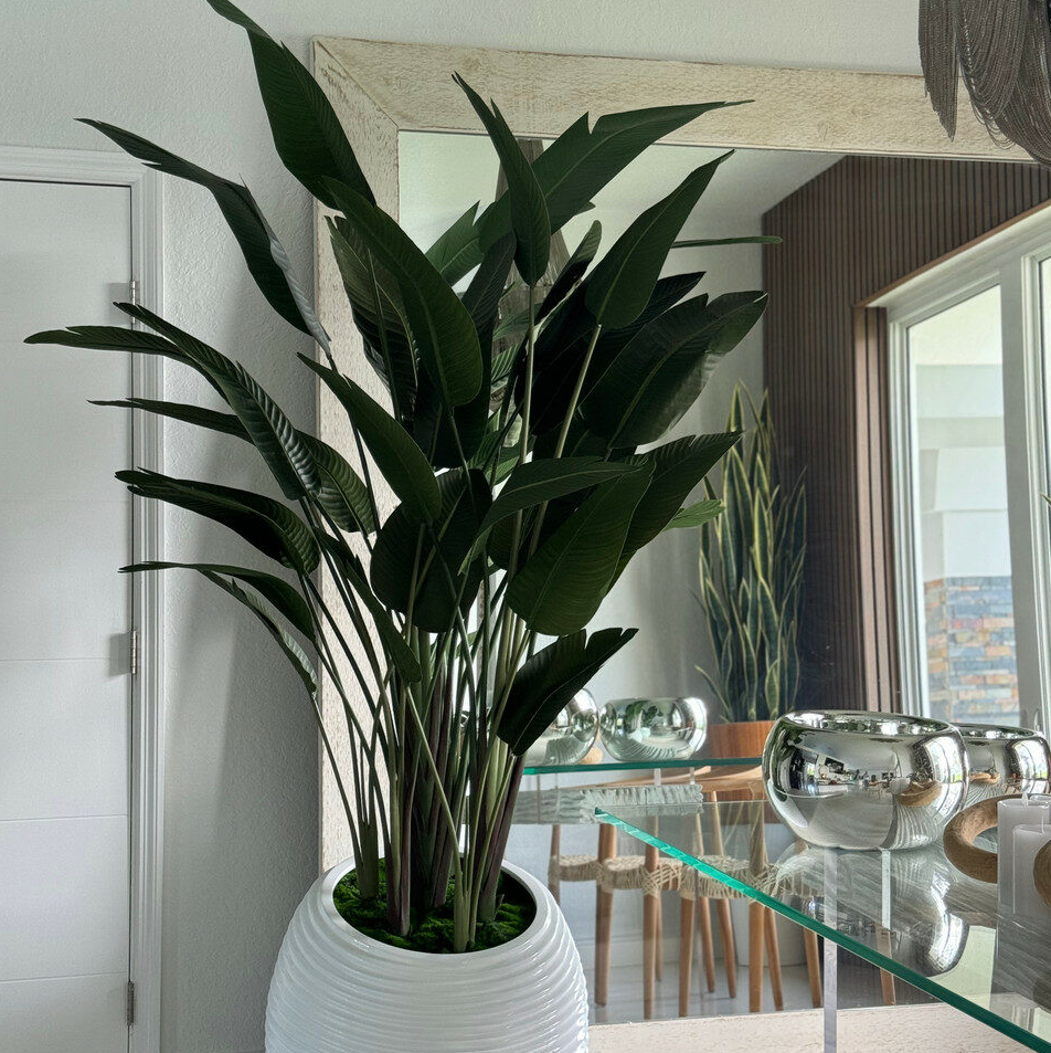 Las líneas en espiral de nuestro Macetero Espiral resaltan perfectamente el Ave del Paraíso, haciendo que esta pieza no solo sea funcional, sino también extremadamente moderna. Este diseño crea una combinación cautivadora de elegancia contemporánea y vibrante follaje tropical. Versátil, esta planta y su exclusivo macetero aportan sofisticación y vitalidad a cualquier espacio.